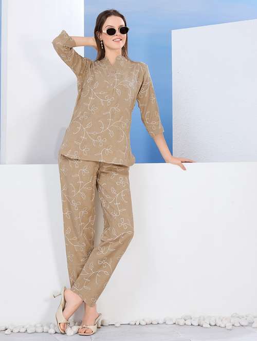 - » women embroidered top and trouser co-ord set