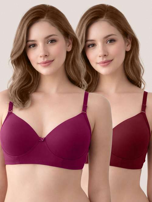 women pack of 2 solid lightly padded regular bra