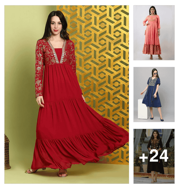 globus women blue ethnic block print mandarin collar flared hem tiered maxi fusion dress