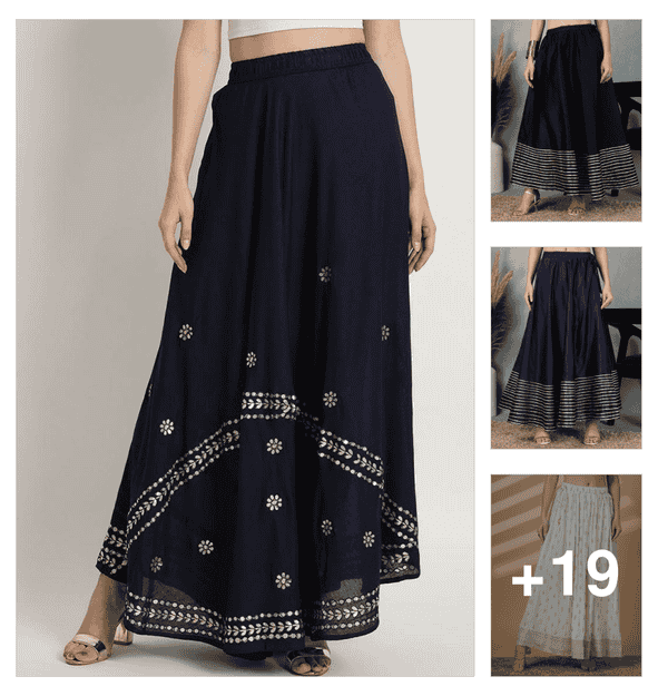 women gota patti mid rise flared maxi skirt