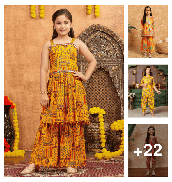 girls ombre kurta sharara set