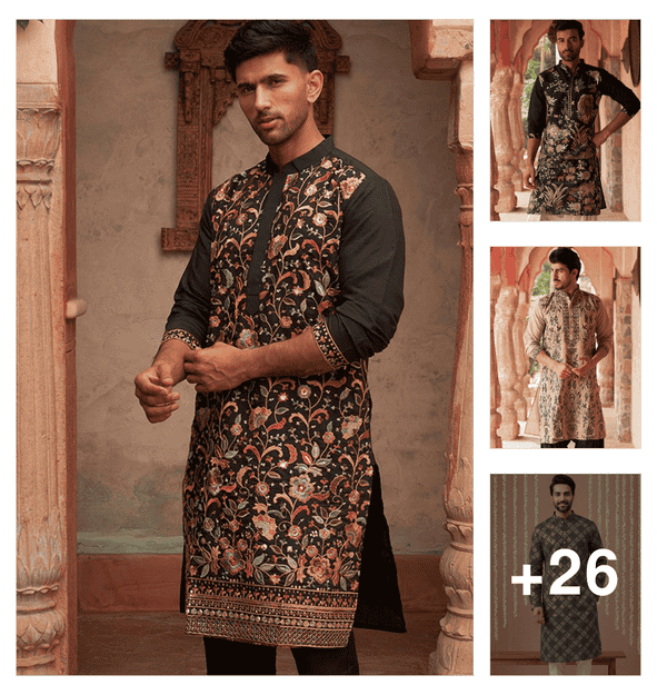 men embroidered mandarin neck long kurta