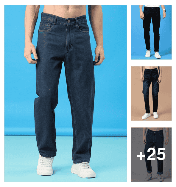 men plain mid rise full length jeans
