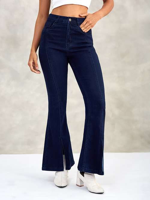 - » women solid high rise bootcut jeans