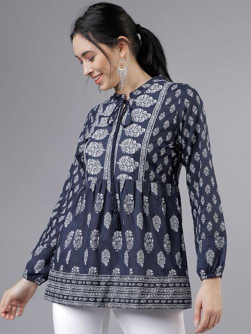 - Are tunics your first love? Well, lay your hands on a spectacular collection of tunics from Vishudh and flaunt them in navy blue colours.